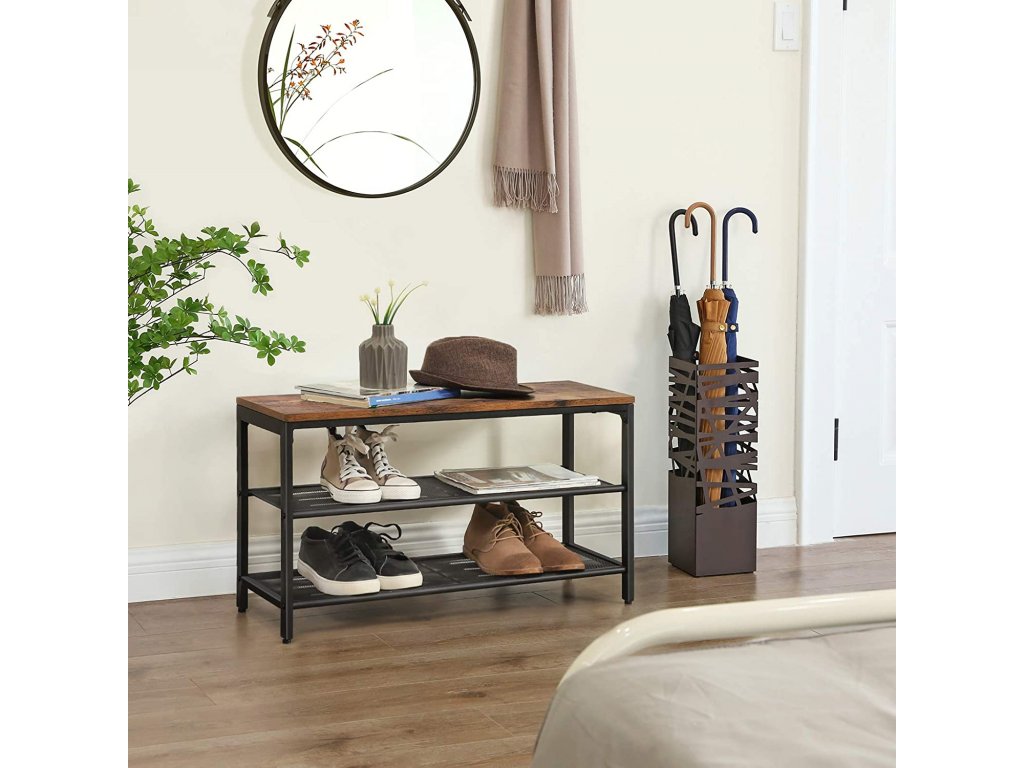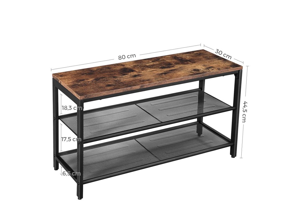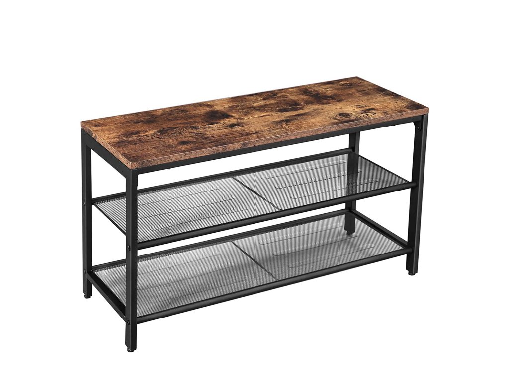 Botník a sedací lavice Vivian, hnědá / černá Botník se 2 mřížkovými přihrádkami, regál na boty s lavicí, 80 x 30 x 44,5 cm, přihrádka na boty pro vstupní prostory, industriální design, vintage