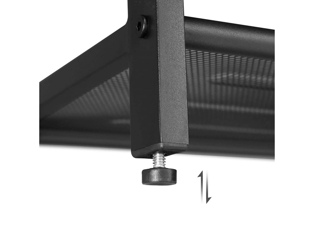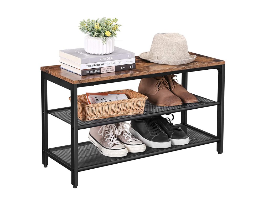 Silný design: 2 otevřené přihrádky botníku s hustou mřížkou na boty, na kterém si můžete pohodlně obout boty (nosnost až 90 kg, přihrádky na boty vždy až 5 kg).