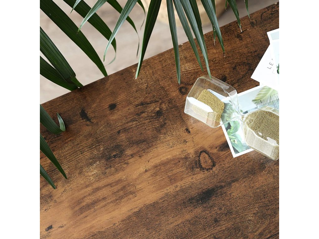 Získejte sedací lavici se stylovým povrchem ve vzhledu dřeva a botník se 2 černými mřížkovými přihrádkami v industriálním stylu v jednom!