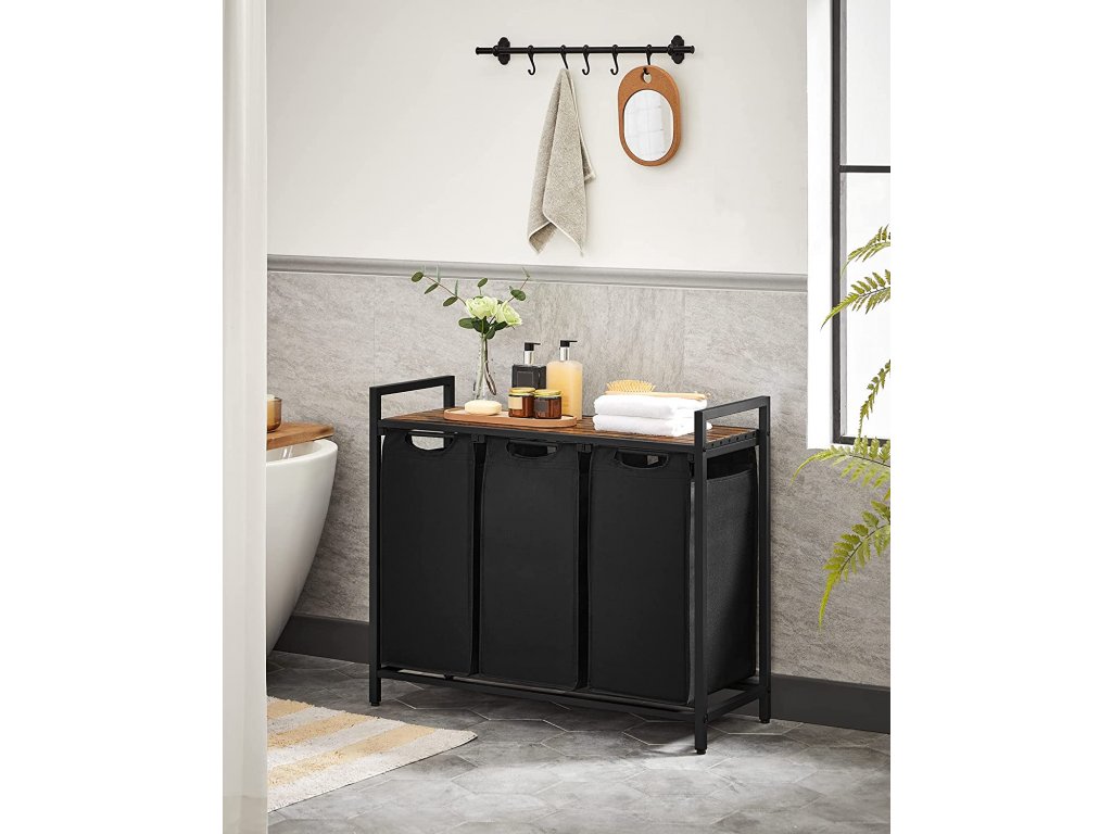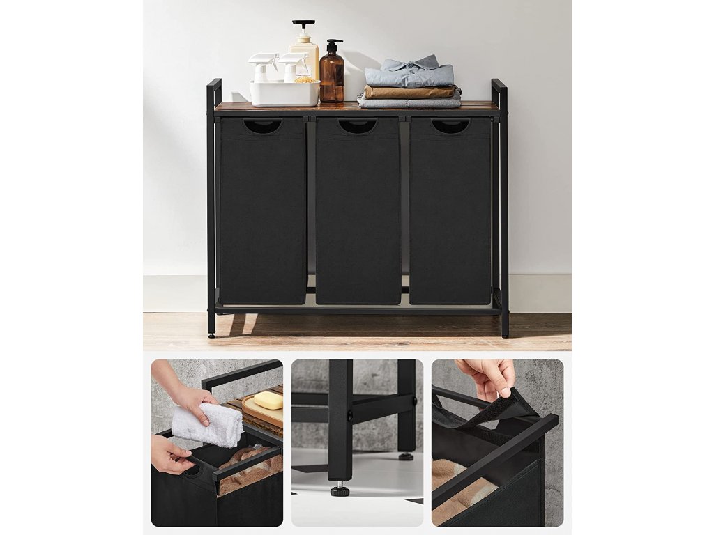 Koš na prádlo Keeley, Rustikální hnědá Koš na prádlo, 3 odnímatelné kapsy z tkaniny Oxford, kovový rám, vintage hnědá – černá.