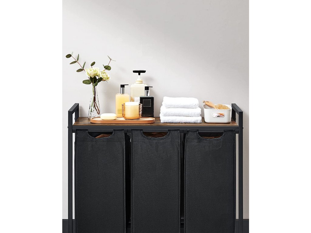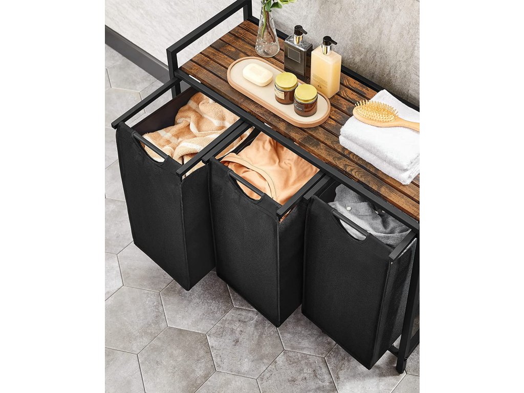 Jednoduše výsuvné a odnímatelné pytle na prádlo: 3 přihrádky jsou podepřeny plastovou deskou, aby se zabránilo prověšení, lze je jednoduše vytáhnout a díky suchým zipům sundat a prát v pračce.