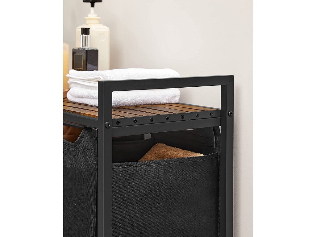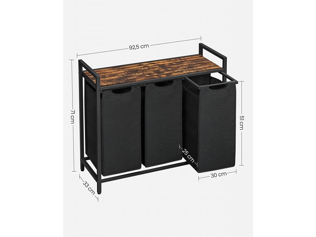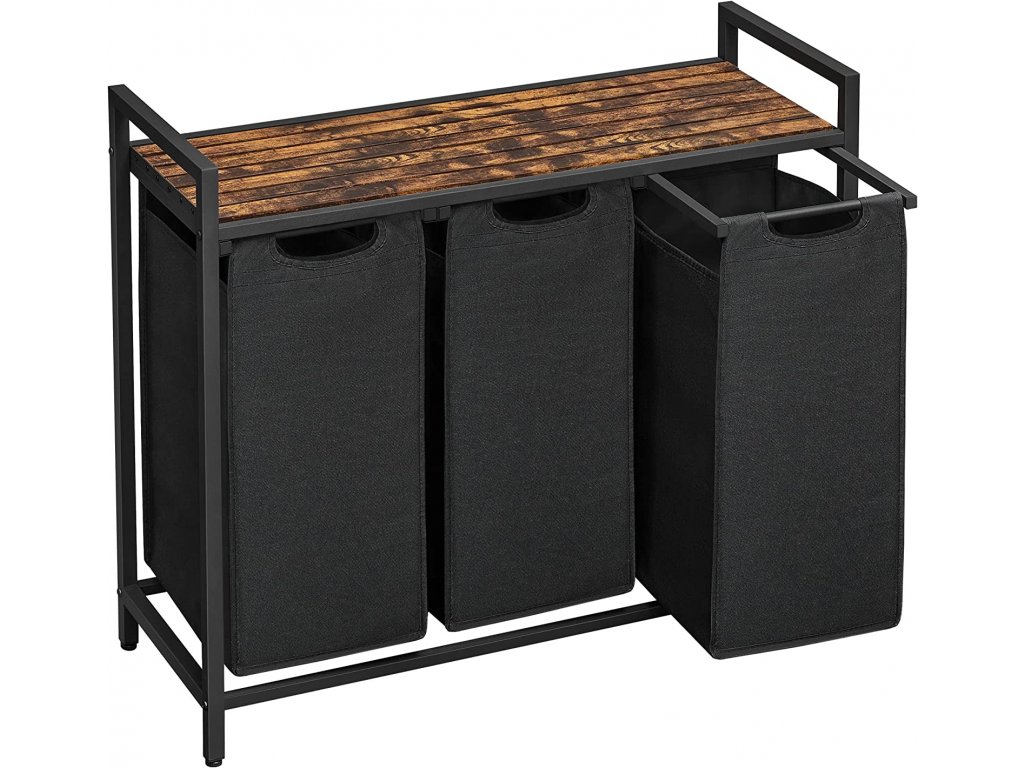 Koš na prádlo, 3 odnímatelné kapsy z tkaniny Oxford, kovový rám, vintage hnědá – černá.