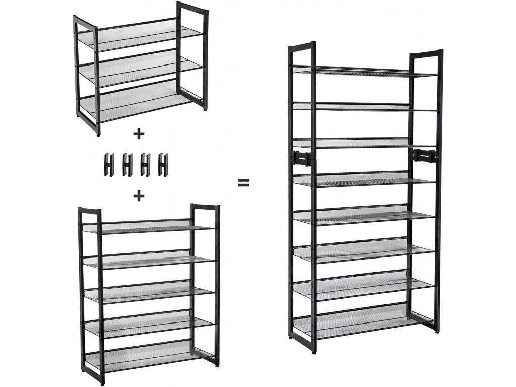 Rozšiřitelný botník – rozšiřte tento Kovový botník Tam, černá s 5 poličkami o další 3 police s Kovovým botníkem Tamara, černá.
