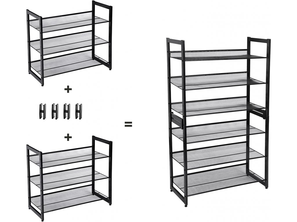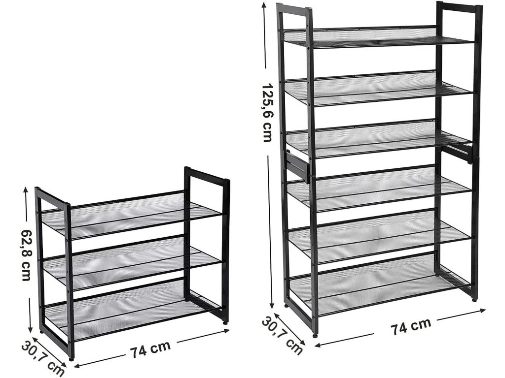 Rozšiřitelný botník – rozšiřte tento Kovový botník Tamara, černá se 3 poličkami o dalších 5 polic s Kovovým botníkem Tam, černá. Pomocí spojů, tak získáte botník s 8 poličkami na dámské i pánské boty.