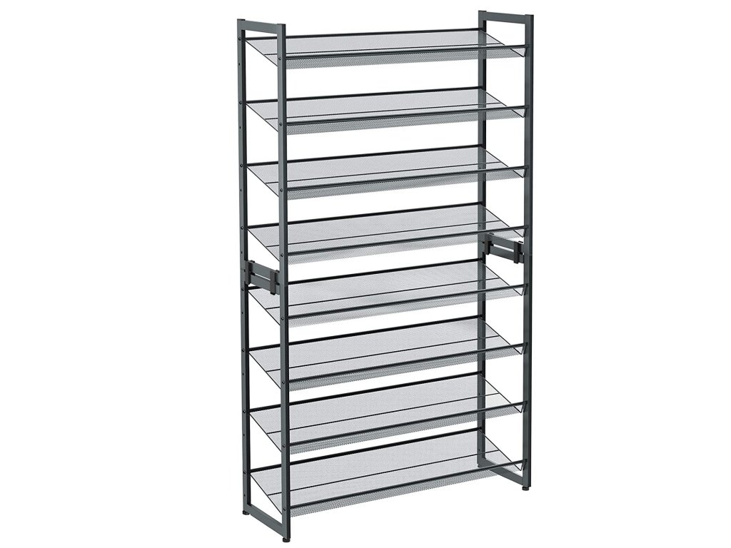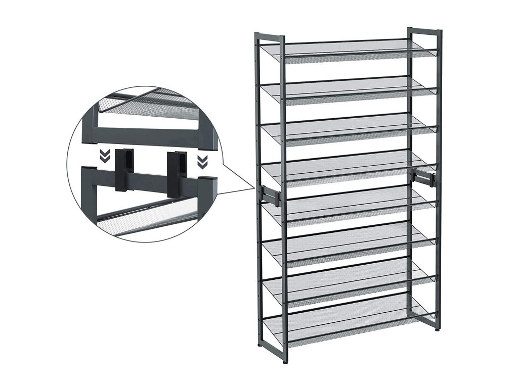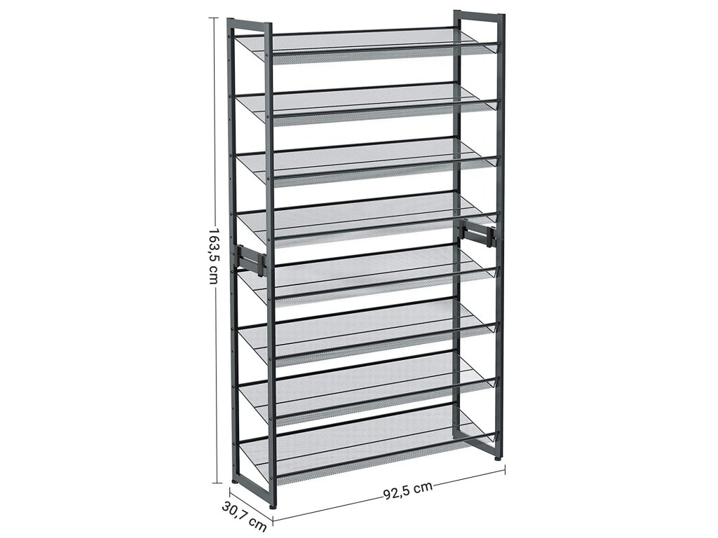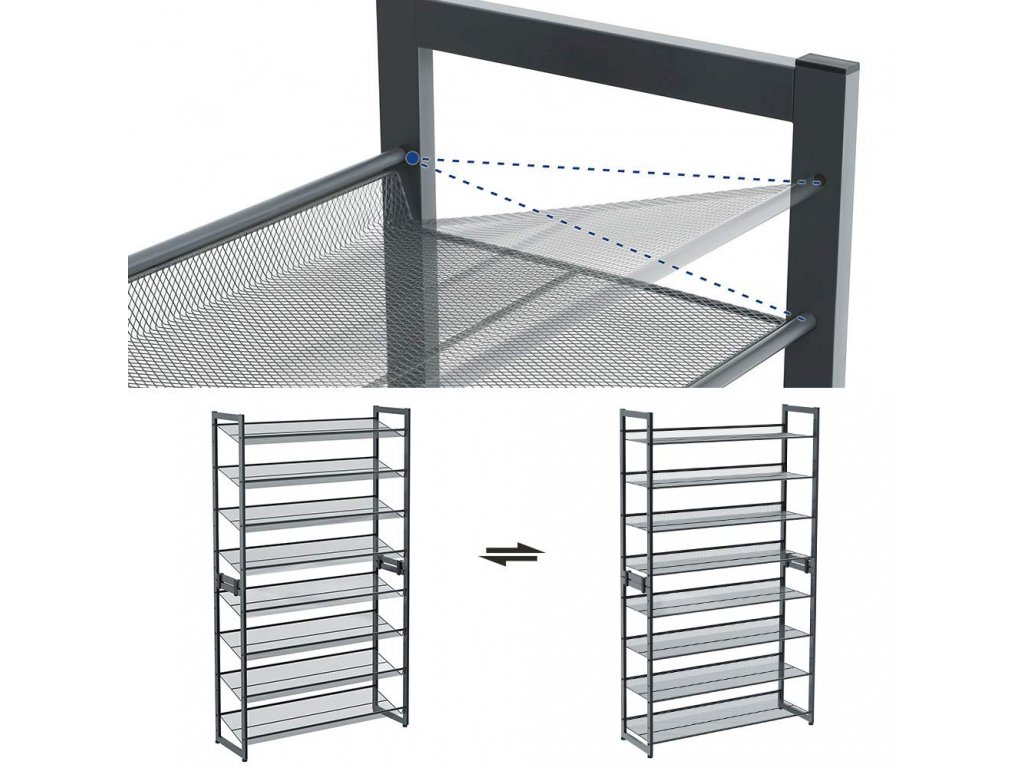 Kovový botník Tane, set 2 ks, šedá Kovový botník s 8 patry, sada ze 2 stohovatelných 4stupňových regálů na boty, s nastavitelnými mřížkovými policemi, šedá.