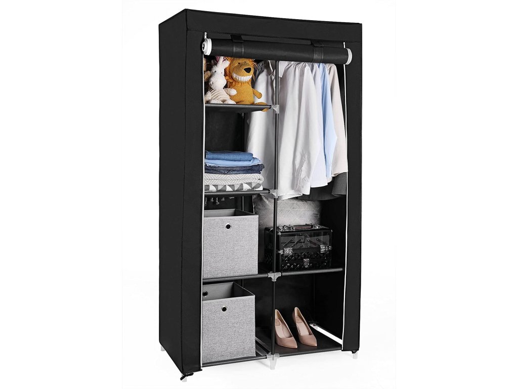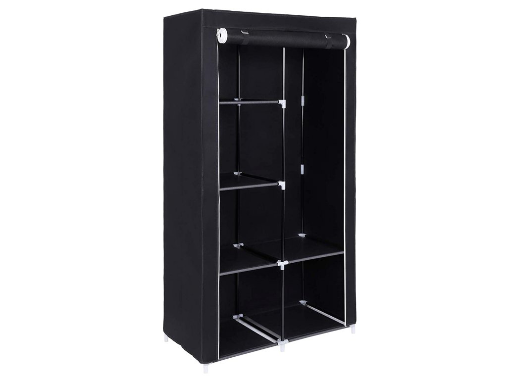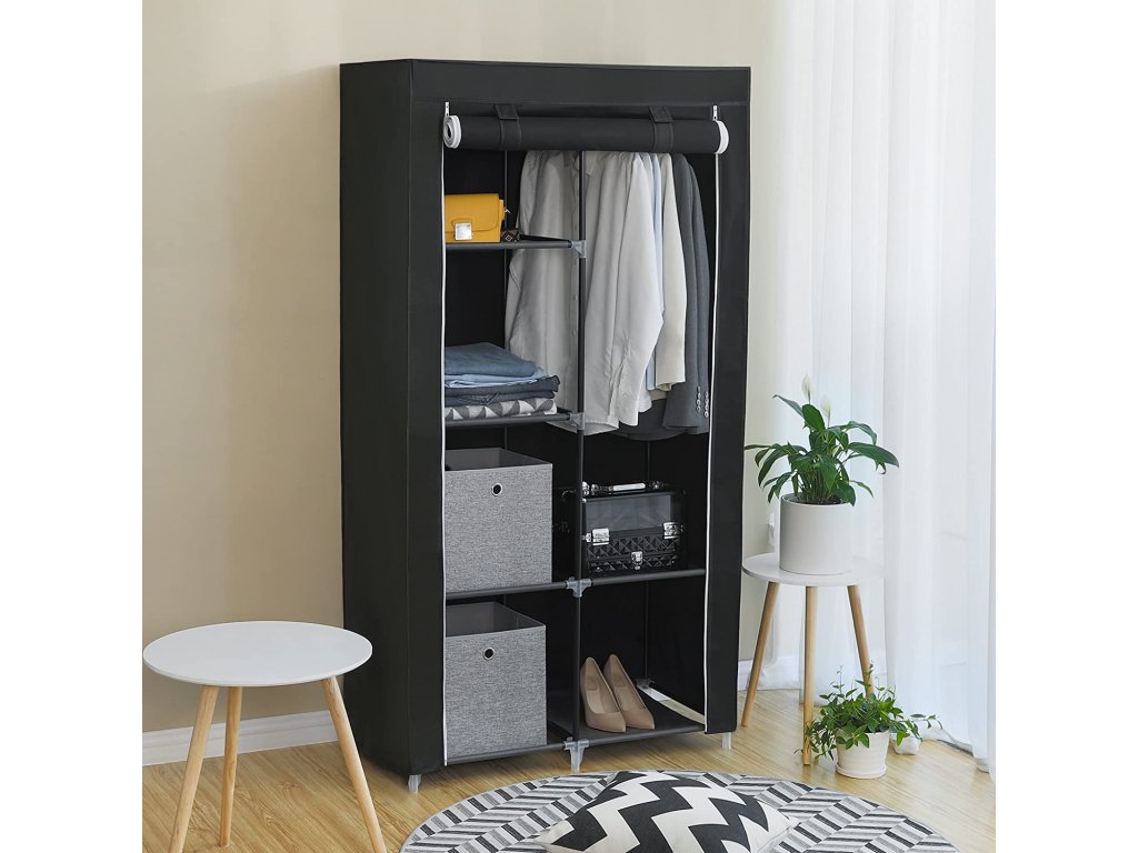 Látková skříň XL Ron, černá XL látková šatní skříň, 7 možností sestavení,stabilní, se 2 tyčemi na šaty, černá.