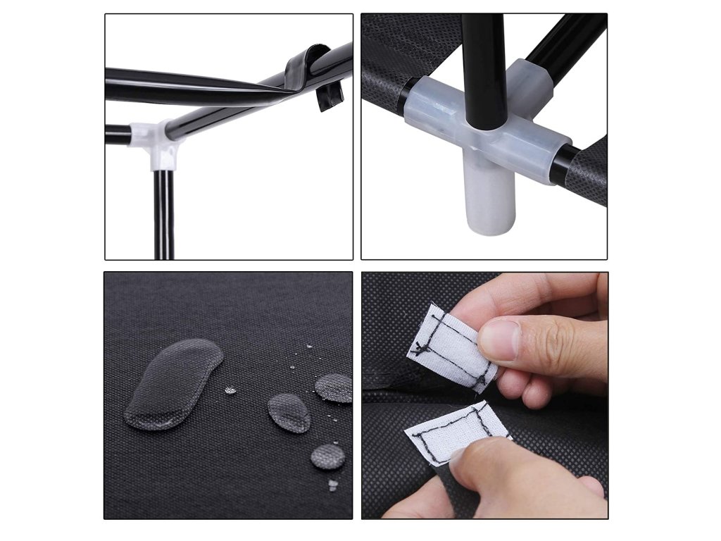 Vysoce kvalitní materiály – kovová konstrukce látkové skříně ze železné trubky, pevná a stabilní - plastový spojovací kus z polypropylenu, bez zápachu, robustní, s dlouhou životností a odolný vůči tlaku.