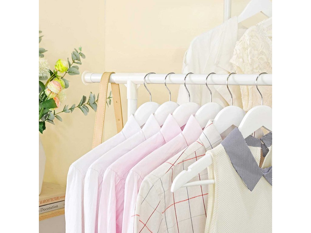 Co dostanete: stojan na šaty se 2 tyčemi, který přinese pořádek do vašeho domova. Kromě toho vám nabízíme podrobný návod a očíslované jednotlivé díly, které usnadňují montáž.