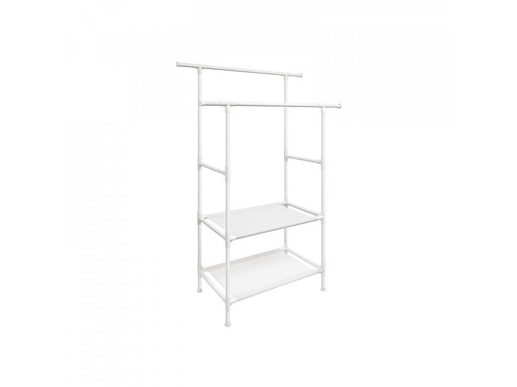 Šatní stojan Amona, Bílá Kovový šatní stojan se 2 tyčemi na šaty, 2 policemi, nosnost až 70 kg, jednoduchá montáž, bílá.