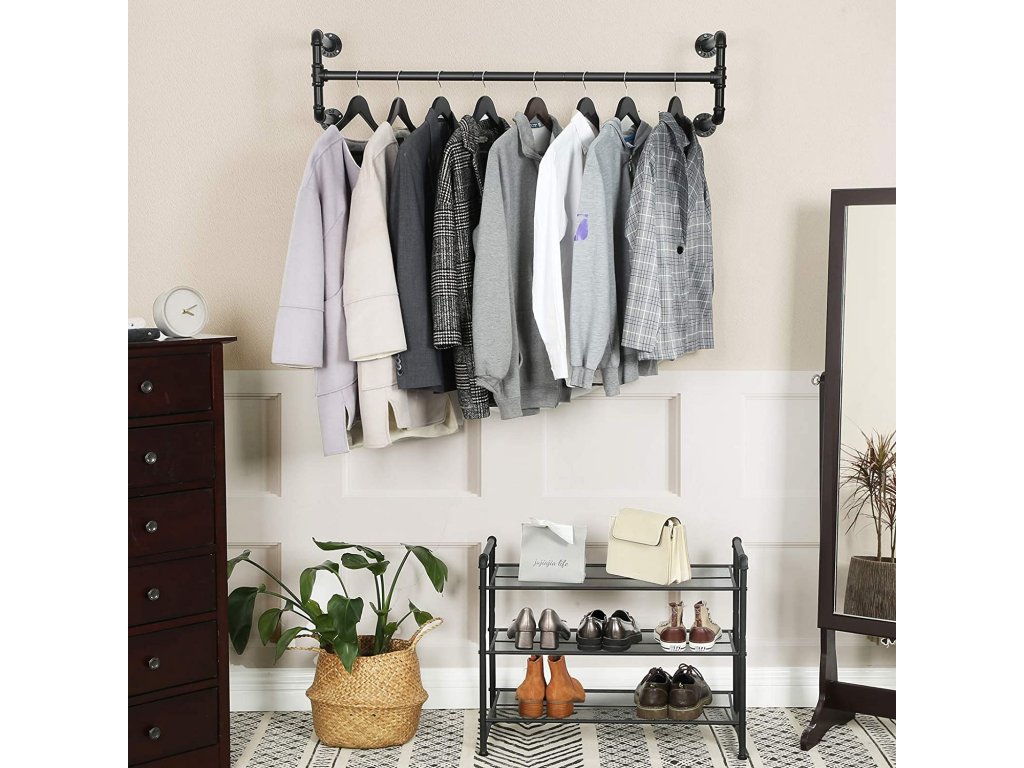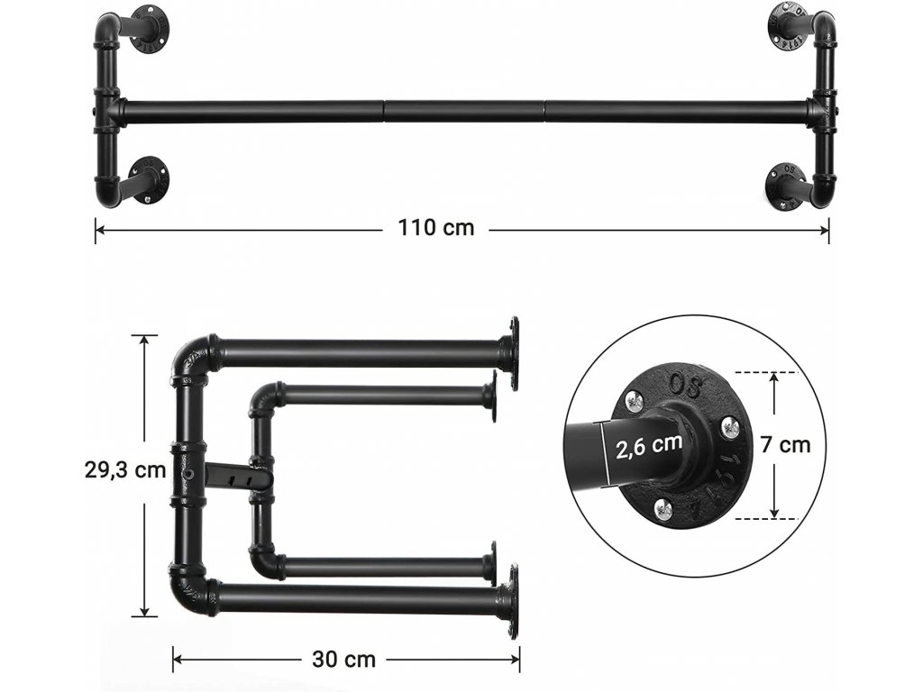 Praská vaše skříň ve švech? Potřebujete další prostor k zavěšení bund? Tato tyč na šaty nabízí tu správnou podporu. Díky černým kovovým trubkám v průmyslovém designu to bude hračka.
