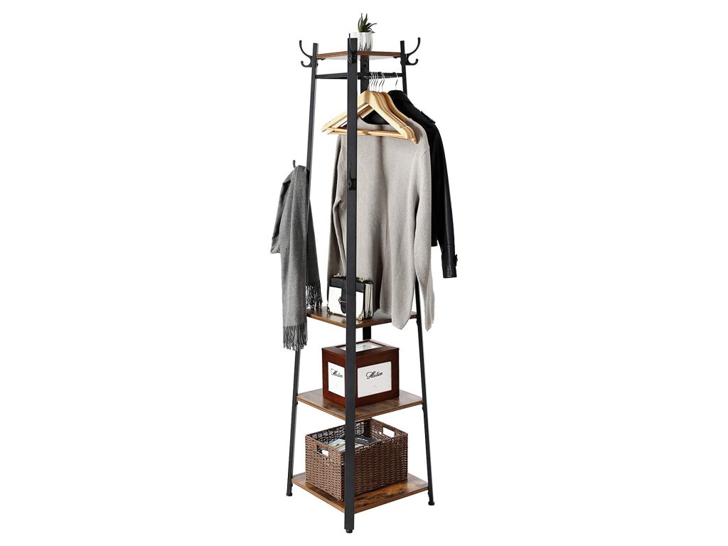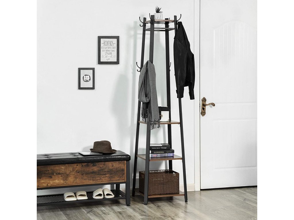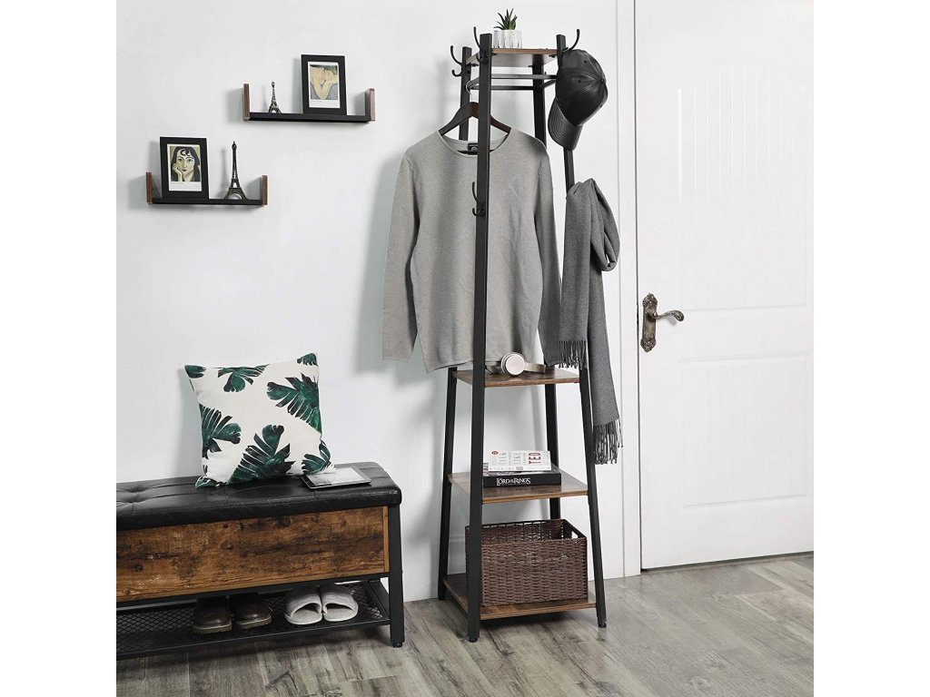 Dvě mouchy jednou ranou: obohaťte svůj vstupní prostor o tento šatní stojan ve stylu vintage s dostatečným úložným prostorem pro bundy, kabáty, čepice a tašky